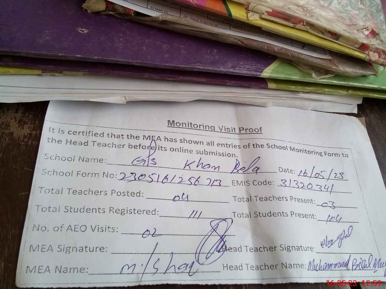 | EMIS Code: 31320341 | Name of School: GPS KHAN BELLA | |||