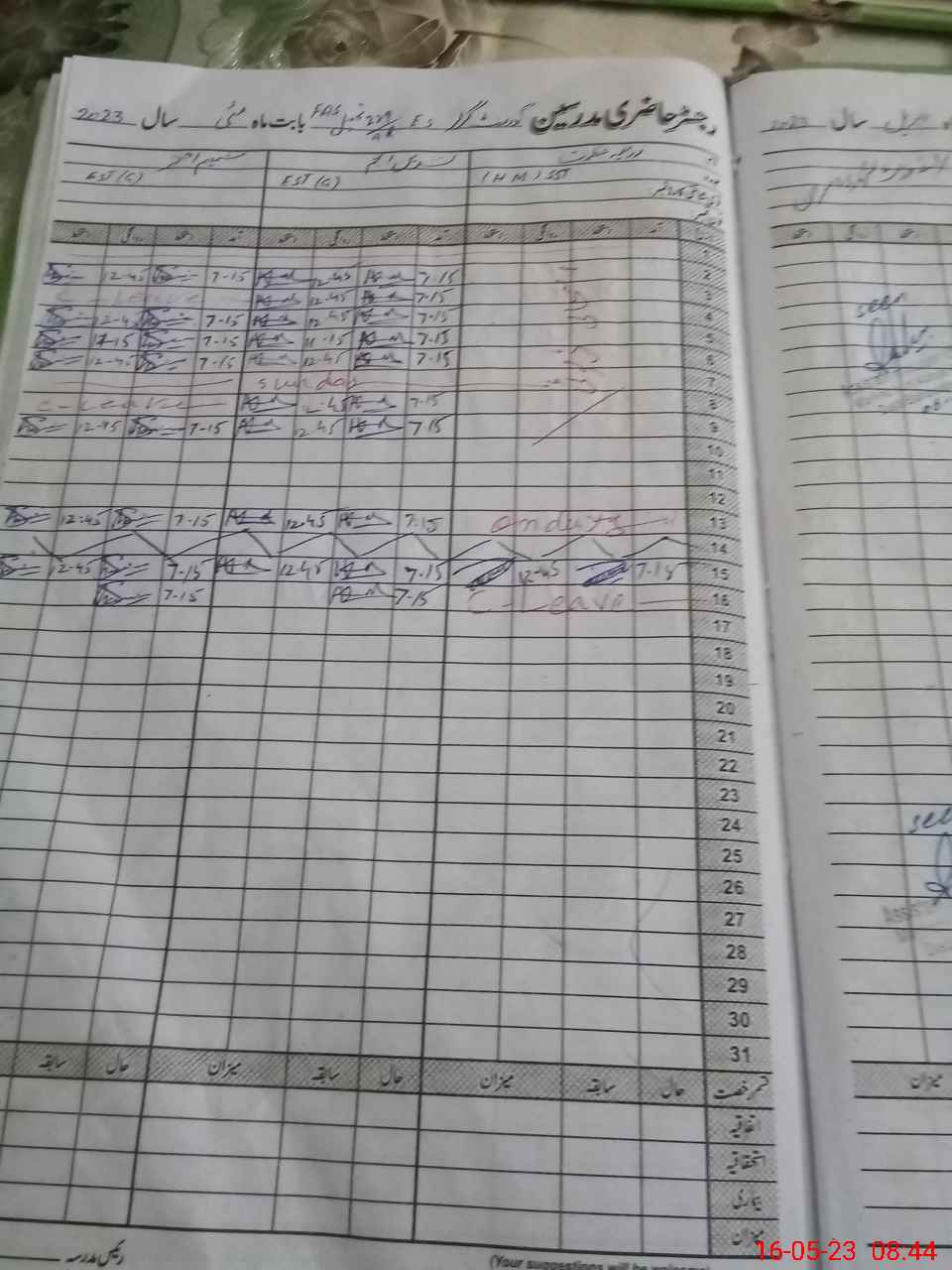 | Leave | Duty | Absent | Maternity | Medical | Ex- Pak |