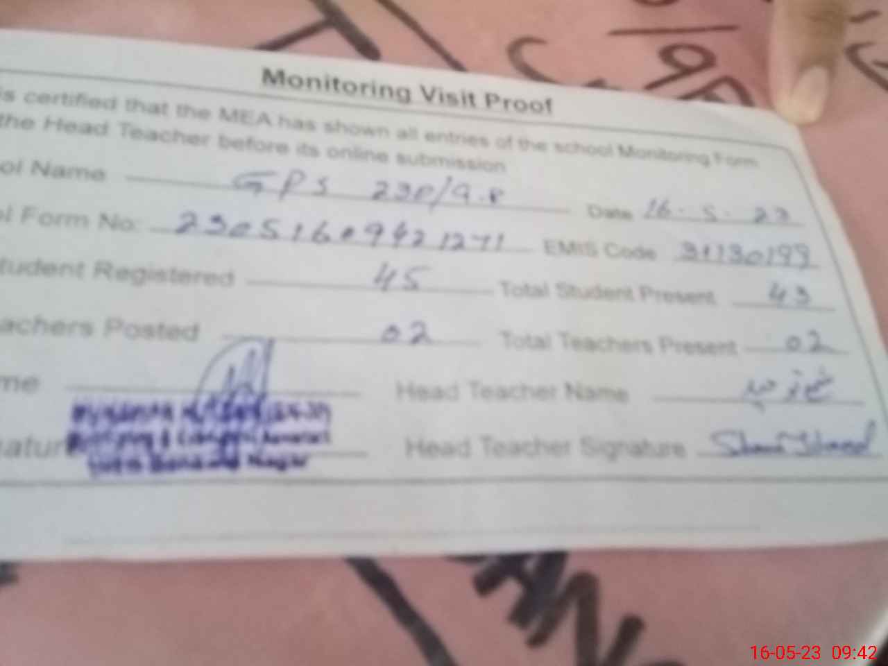 | EMIS Code: 31130199 | Name of School: GPS CHAK 230/9-R | |||