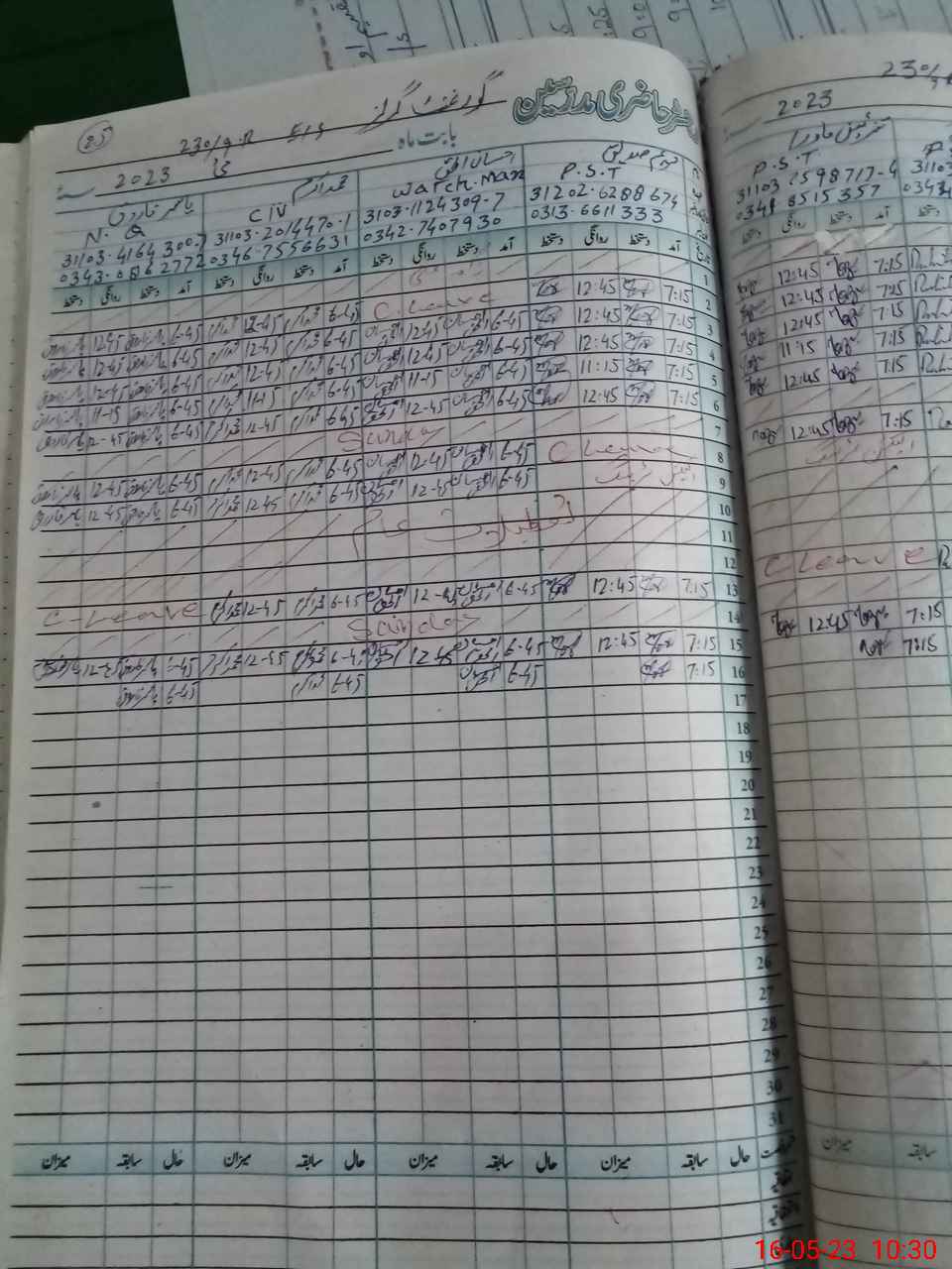 | CNIC | Full Name | Designation | R/C | Absence During Last Calender Month |