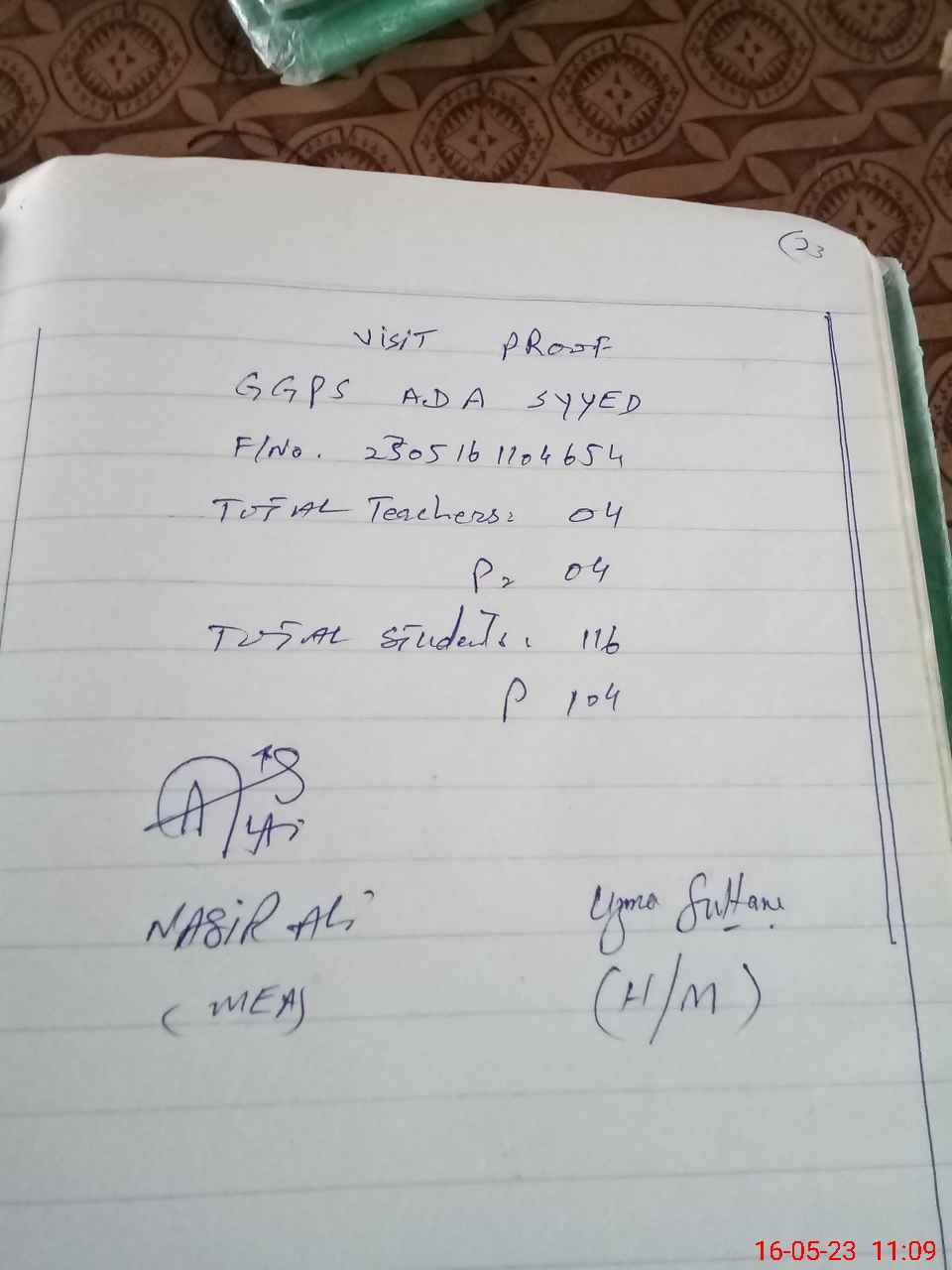 | EMIS Code: 37360539 | Name of School: GGPS ADA SAYYED | |||