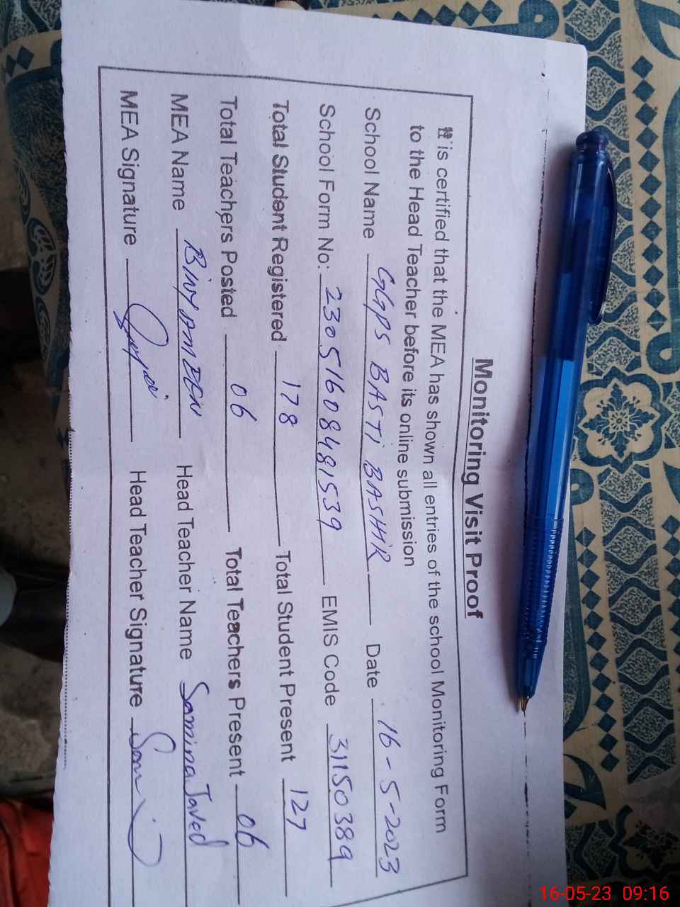 | EMIS Code: 31150389 | Name of School: GGPS BASTI BASHIR | |||