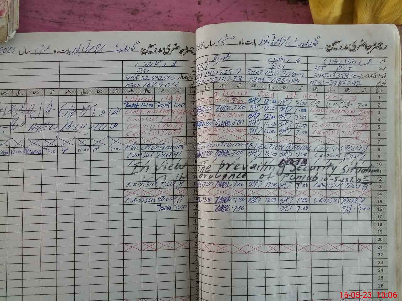 | Name: Mu**** Iq**** Kh**** Designation: (School Headmaster's/Headmistress's) PST Phone/Cell Number: 03**** |