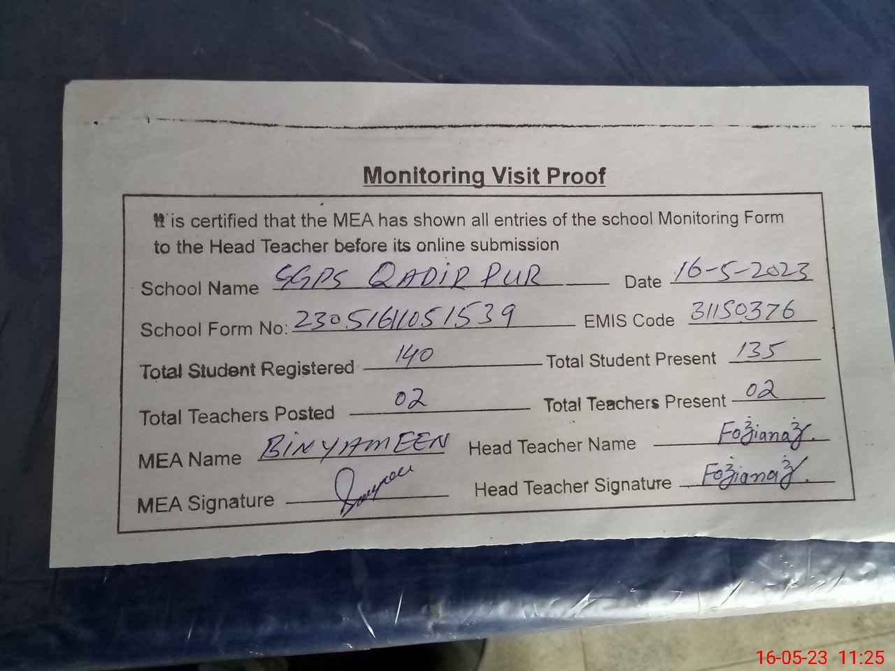 | EMIS Code: 31150376 | Name of School: GGPS QADIR PUR | |||