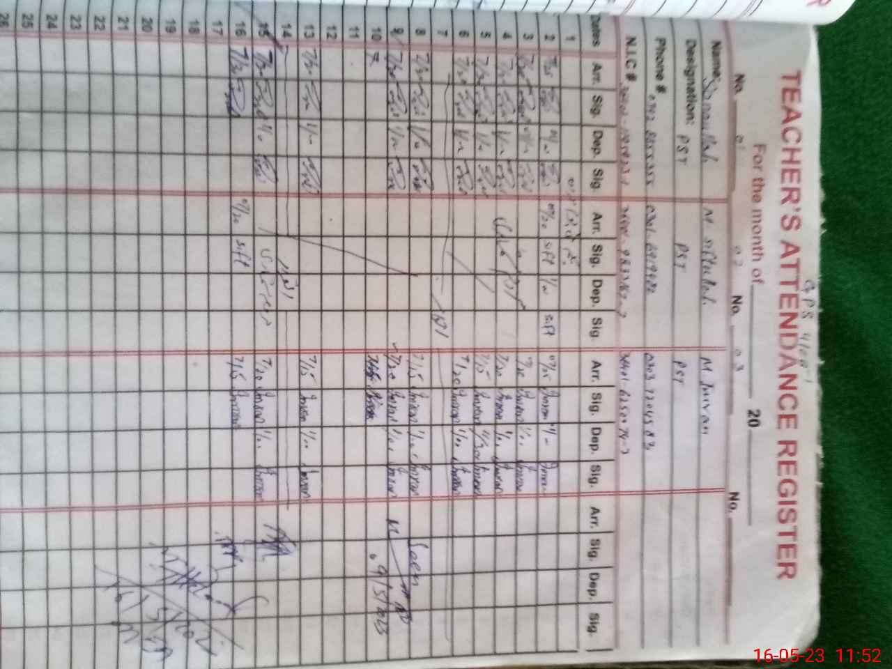 | Name: SA**** UL**** Designation: (School Headmaster's/Headmistress's) PST Phone/Cell Number: 03**** |