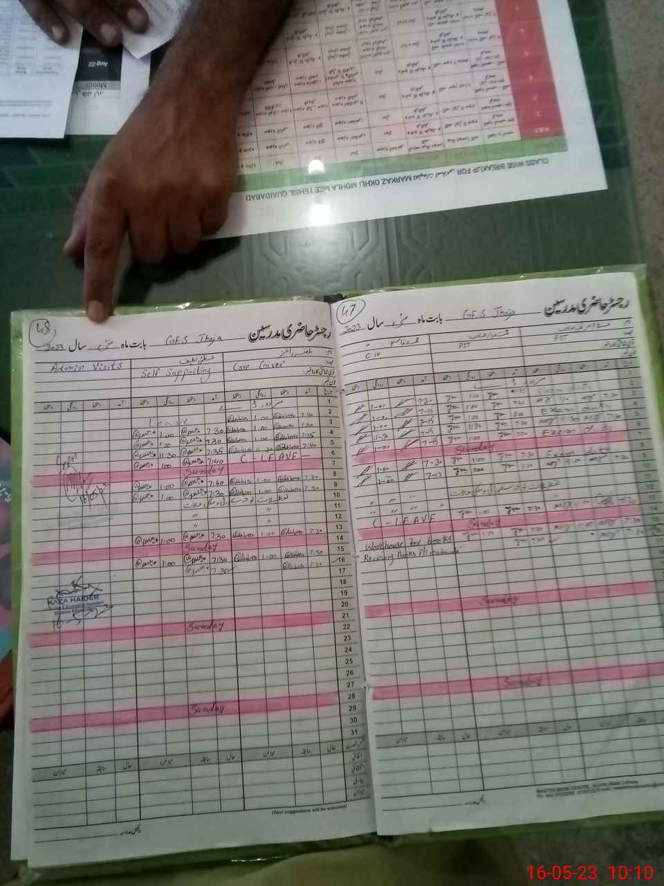 | CNIC | Full Name | Designation | R/C | Absence During Last Calender Month |