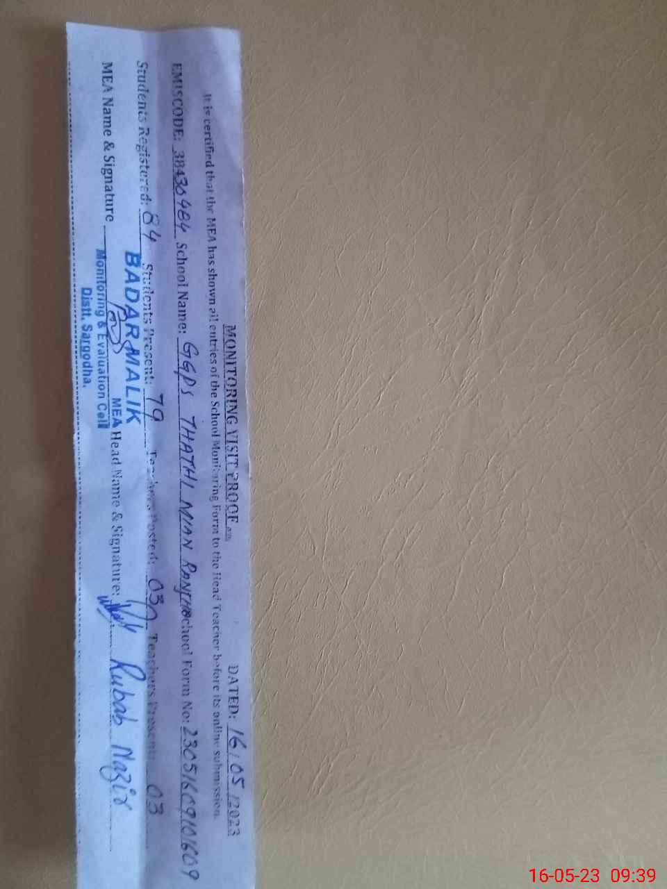 | EMIS Code: 38430484 | Name of School: GGPS THATHI MIAN RANJHA | |||