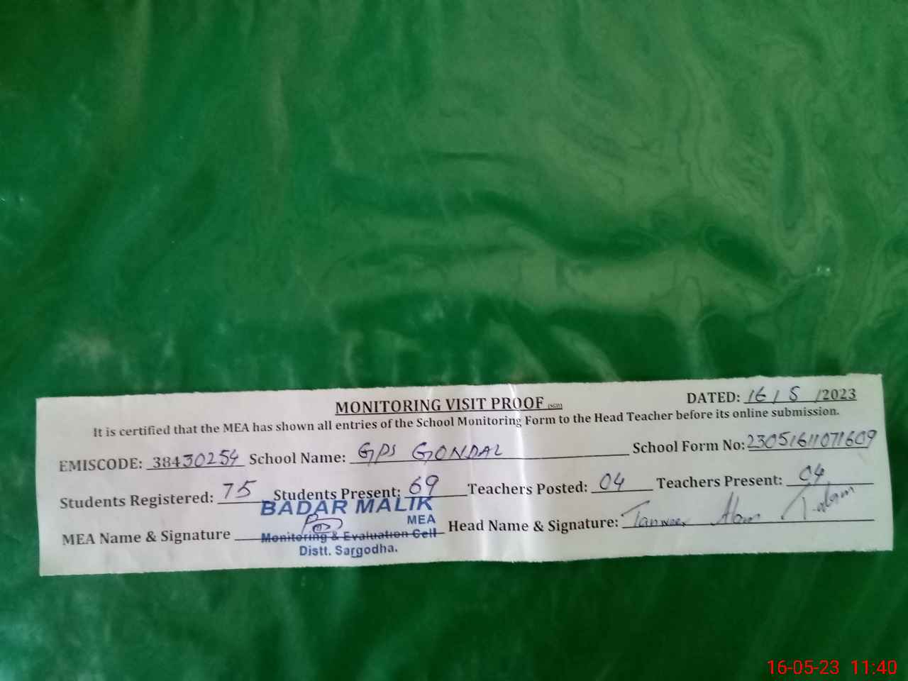 | EMIS Code: 38430254 | Name of School: GPS GONDAL | |||