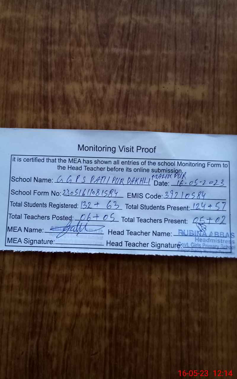 | EMIS Code: 39210584 | Name of School: GGPS PATTI PUR DAKHLI MALIK PUR | |||