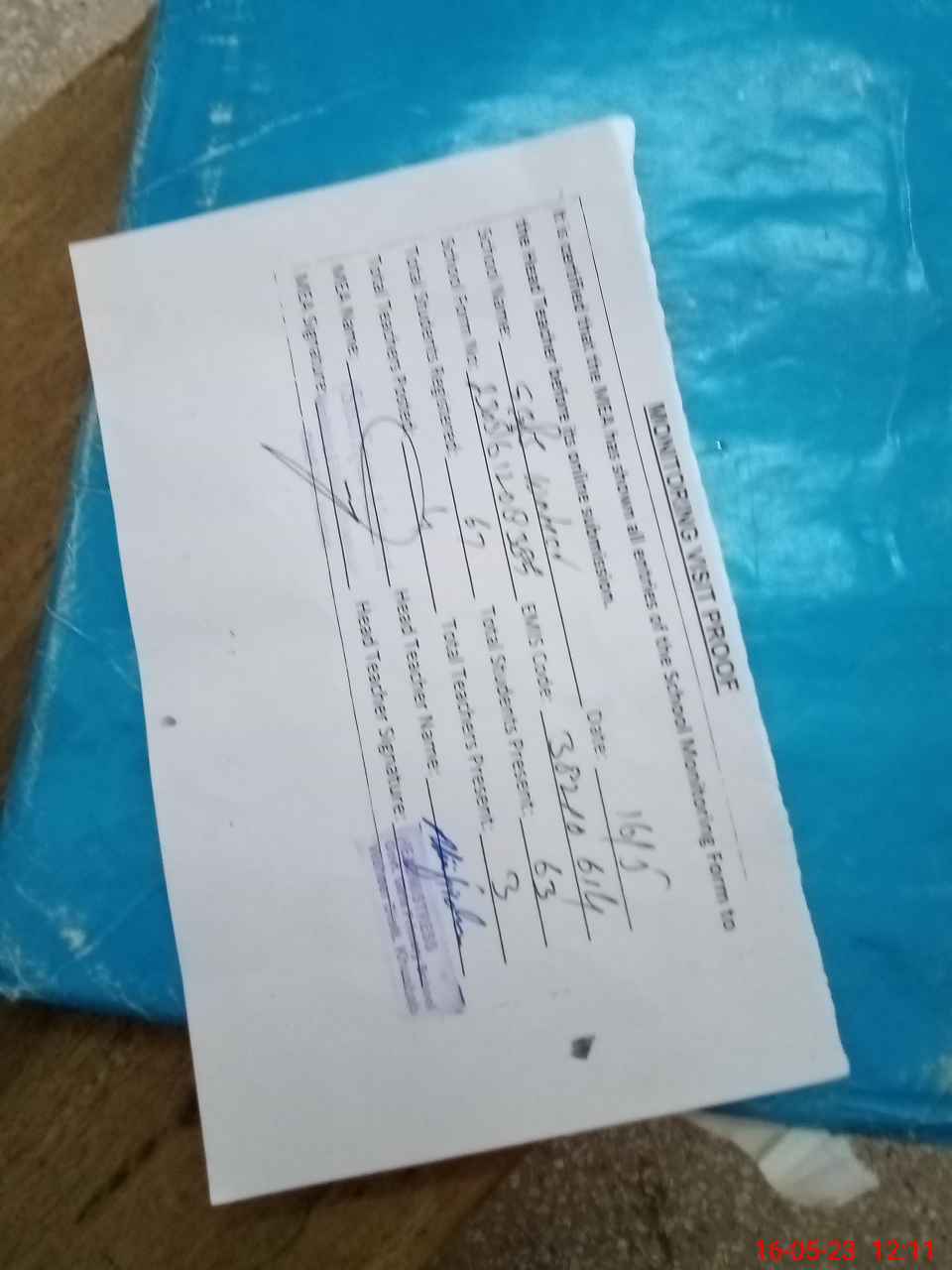 | Attendance Register | Head Teacher | MEA with School | Visit Proof |