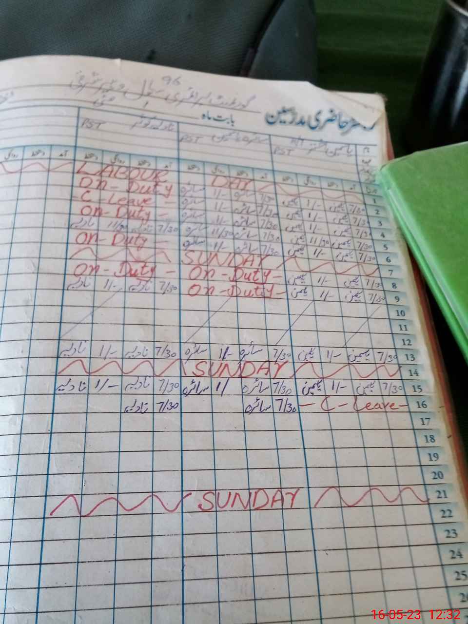 | Leave | Duty | Absent | Maternity | Medical | Ex- Pak |