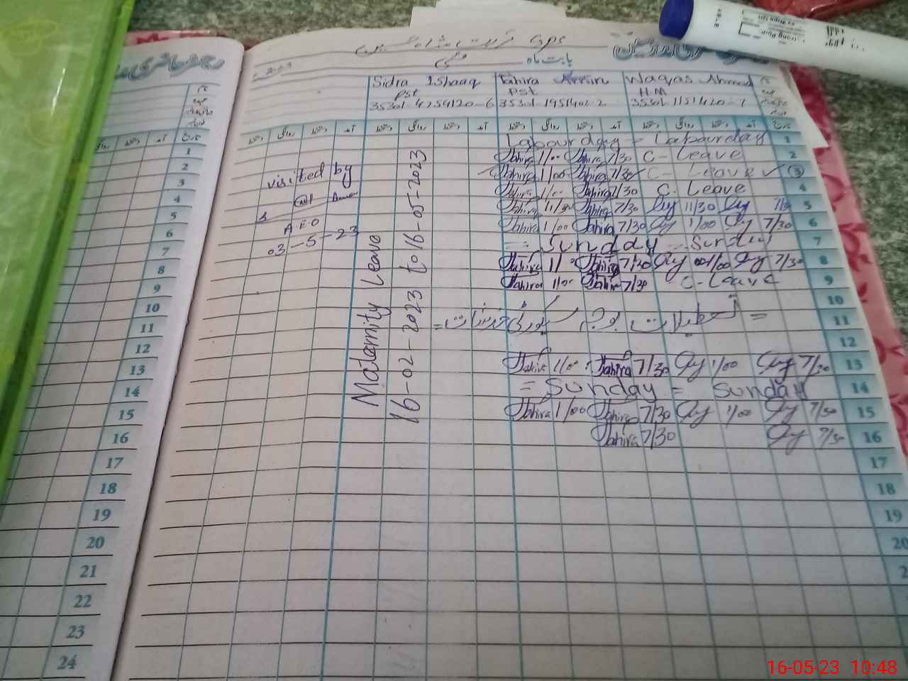 | 35**** | Si**** Is**** | PST | Regular | 0 | 0 | 0 | 0 | 0 | 0 | 0 | 0 | 0 | Maternity |