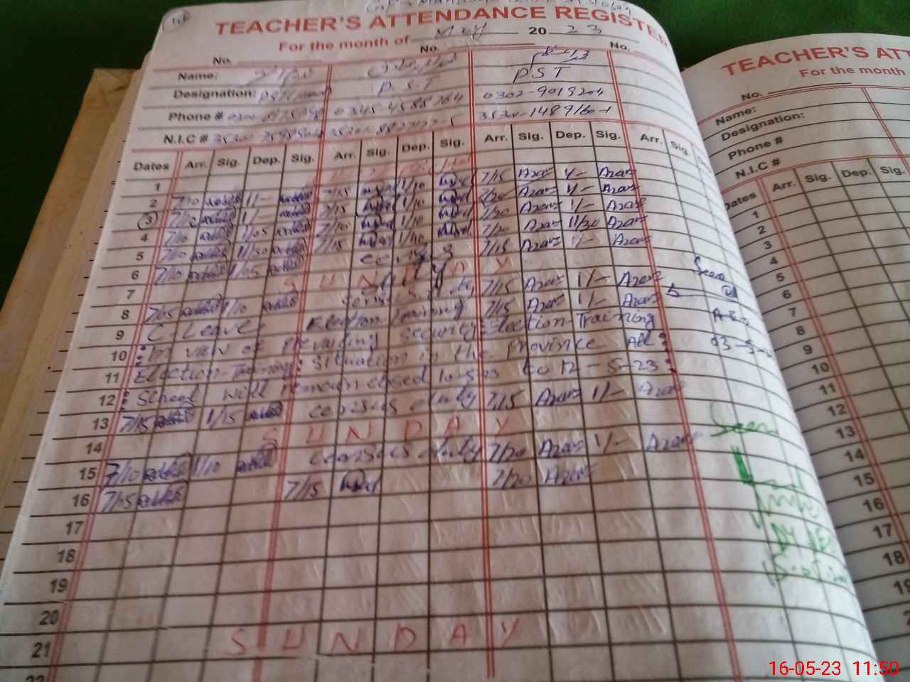 | Name: NA**** AK**** Designation: (School Headmaster's/Headmistress's) PST Phone/Cell Number: 03**** |