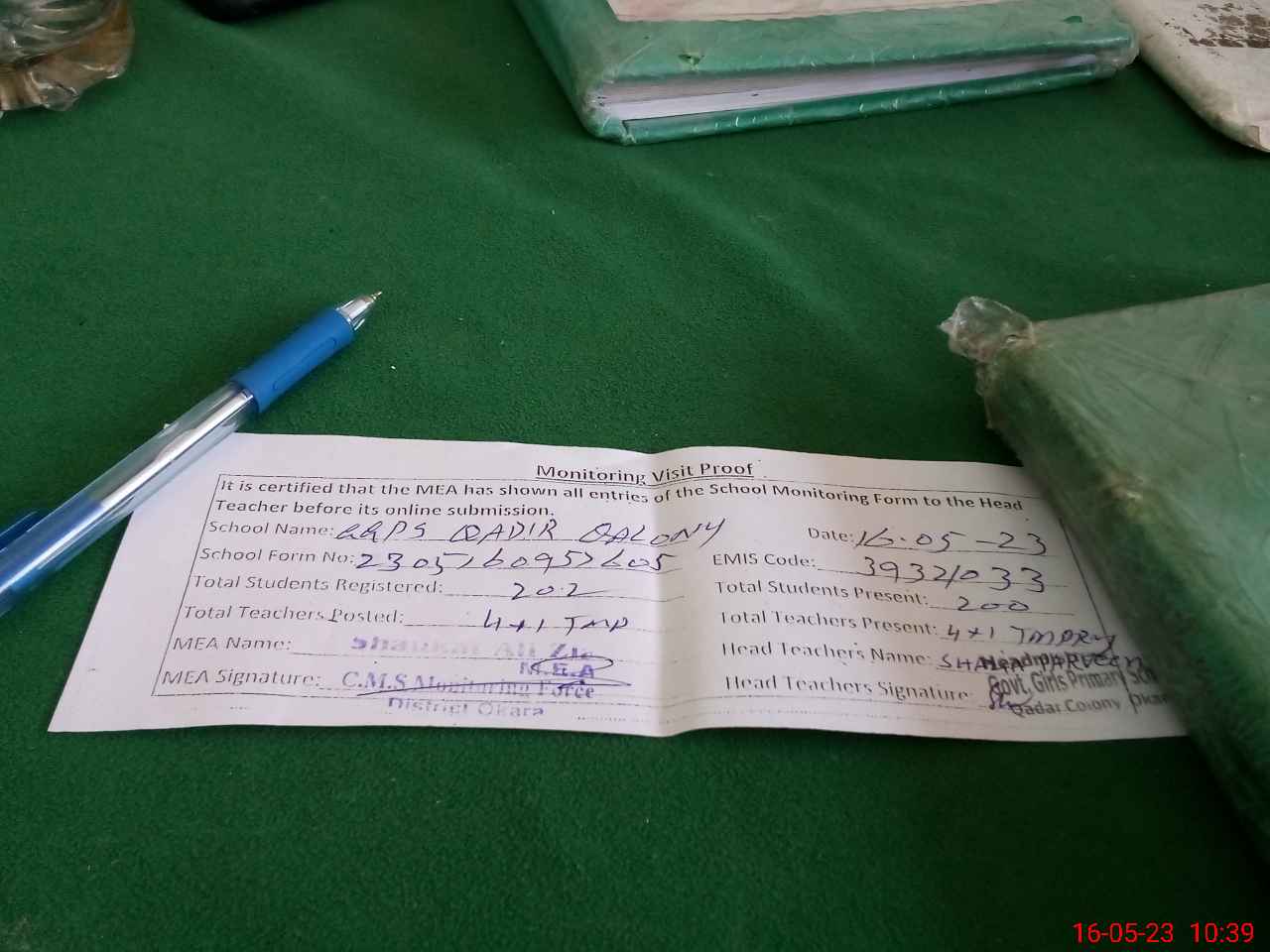 | EMIS Code: 39321033 | Name of School: GGPS QADIR COLONY | |||