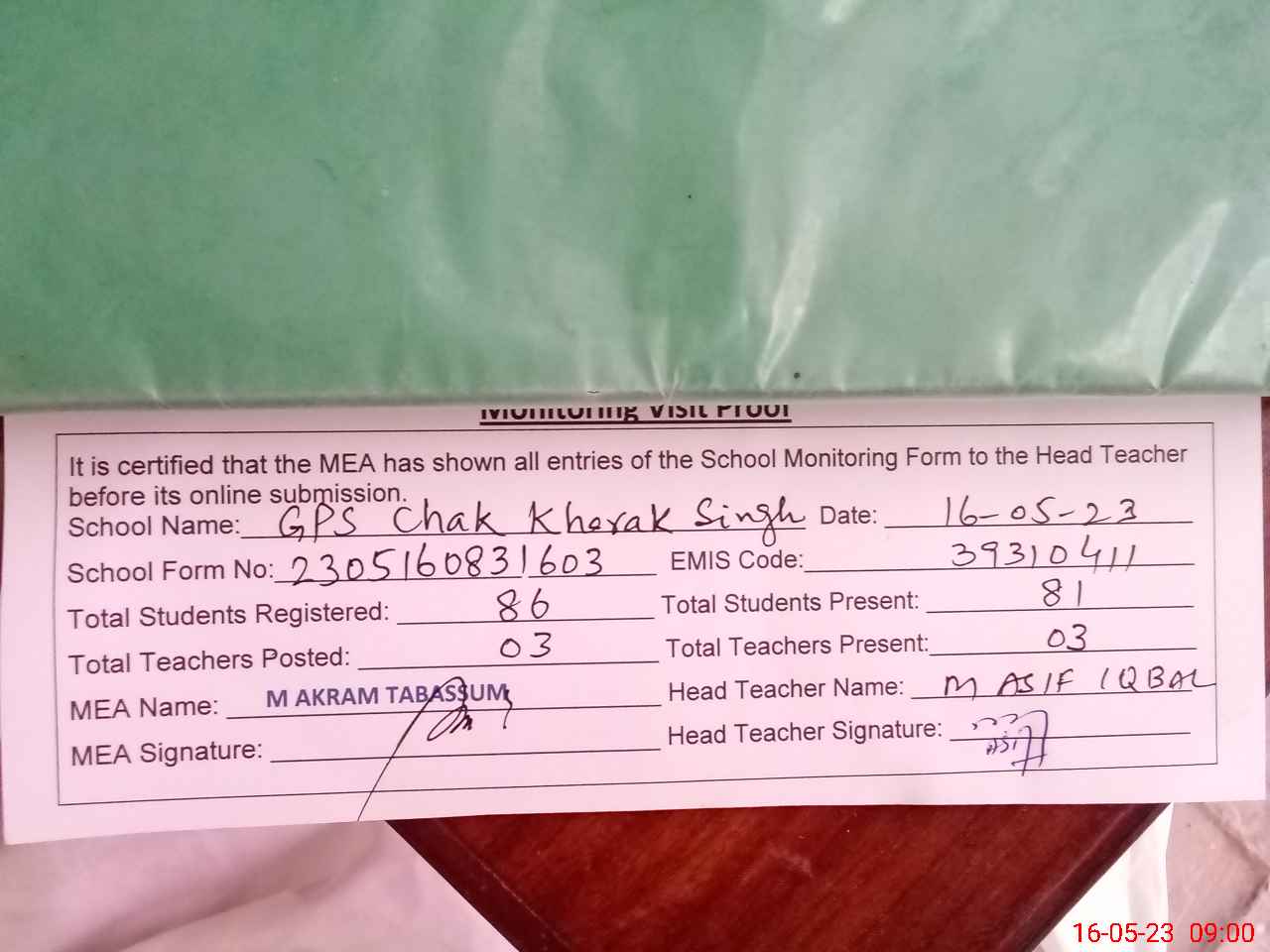 | EMIS Code: 39310411 | Name of School: GPS CHAK KHARAK SINGH | |||
