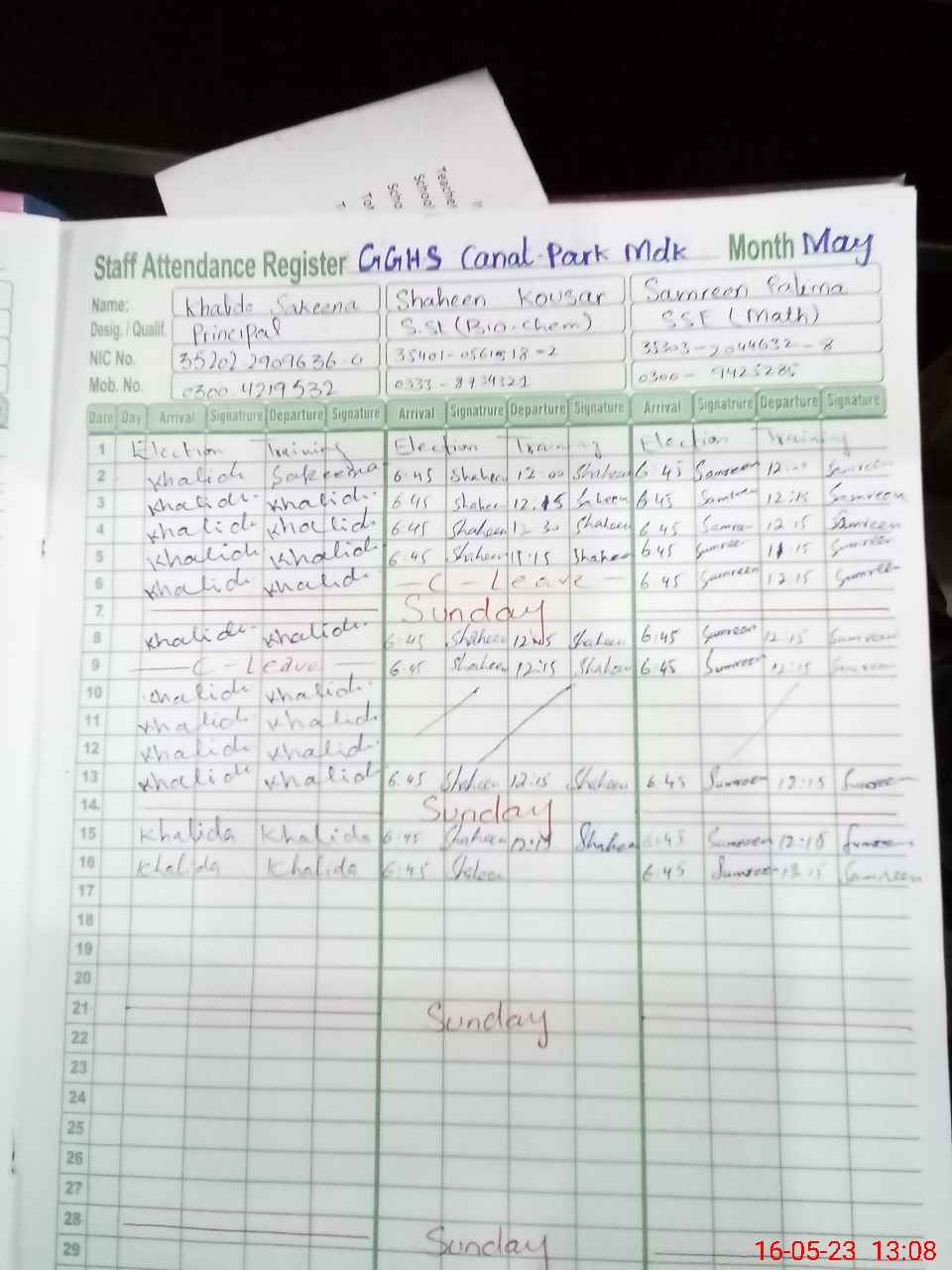 | Name: KH**** SA**** Designation: (School Headmaster's/Headmistress's) Principal Phone/Cell Number: 03**** |