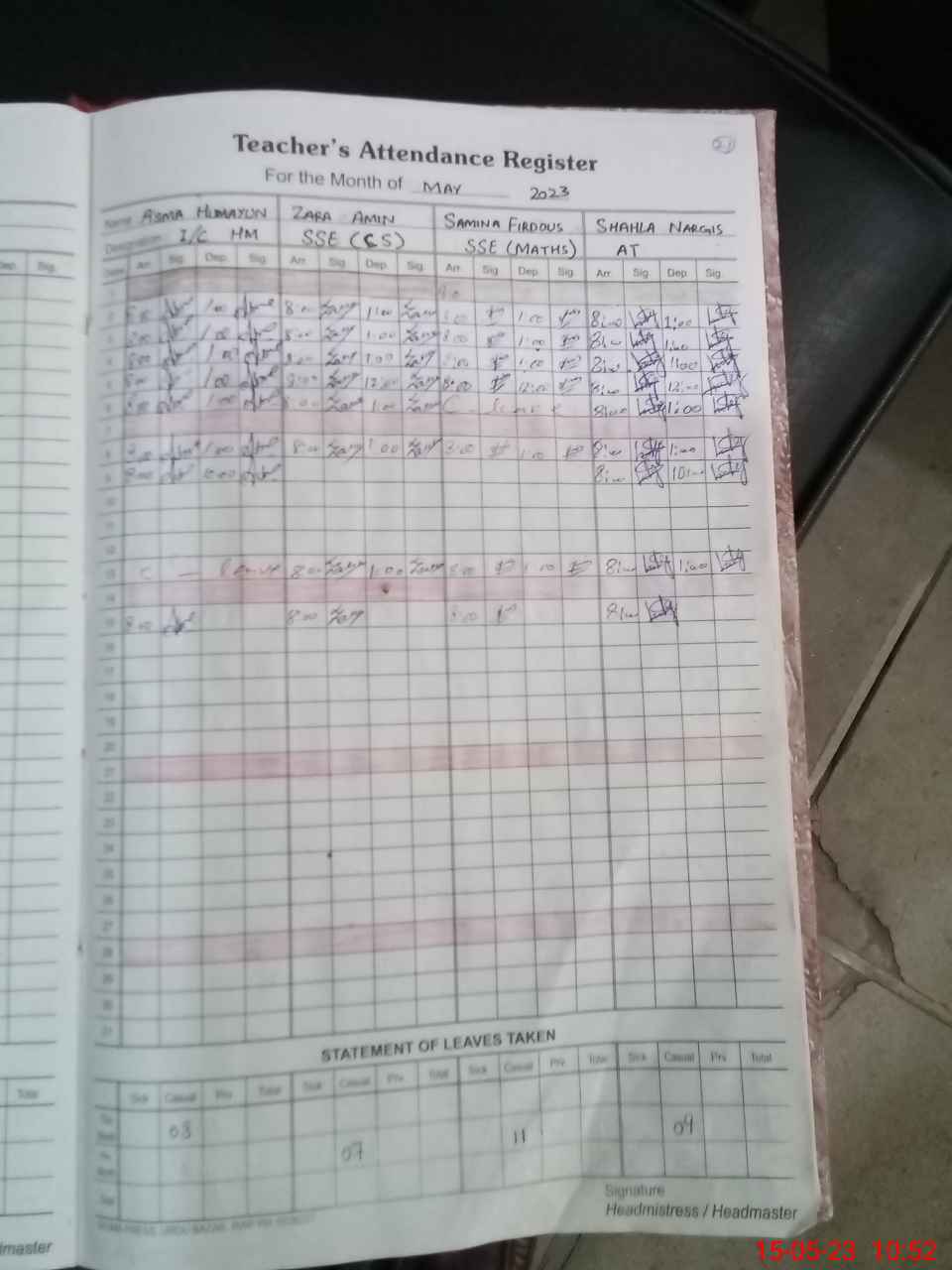 | Name: AS**** HU**** Designation: (School Headmaster's/Headmistress's) SST(SCI) Phone/Cell Number: 03**** |