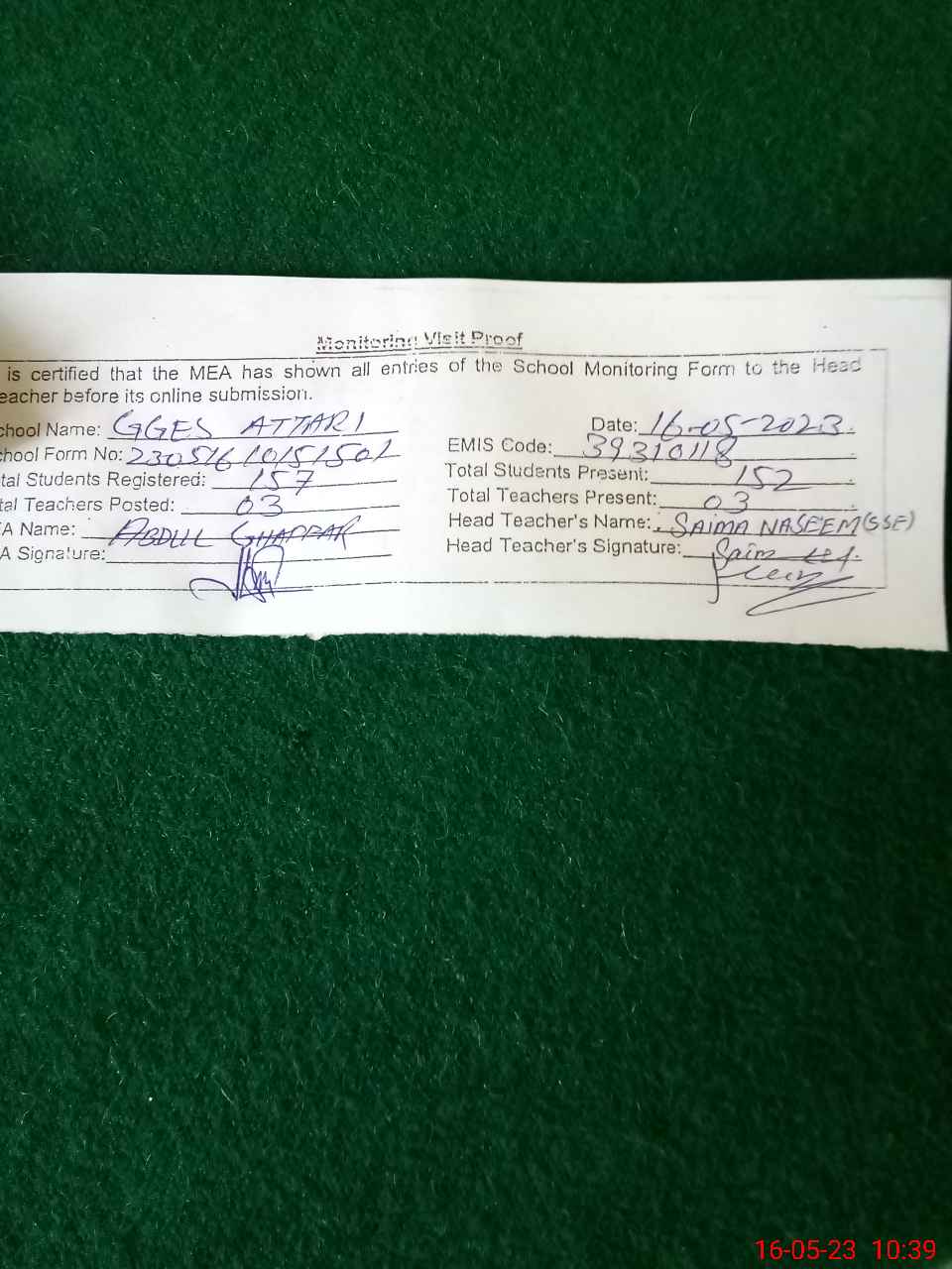 | EMIS Code: 39310118 | Name of School: GGES ATTARI | |||