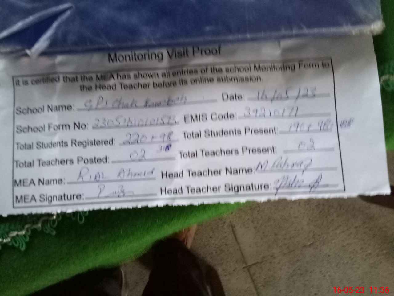 | EMIS Code: 39210171 | Name of School: GPS CHAK KAMBOH PO PAKPATTAN | |||