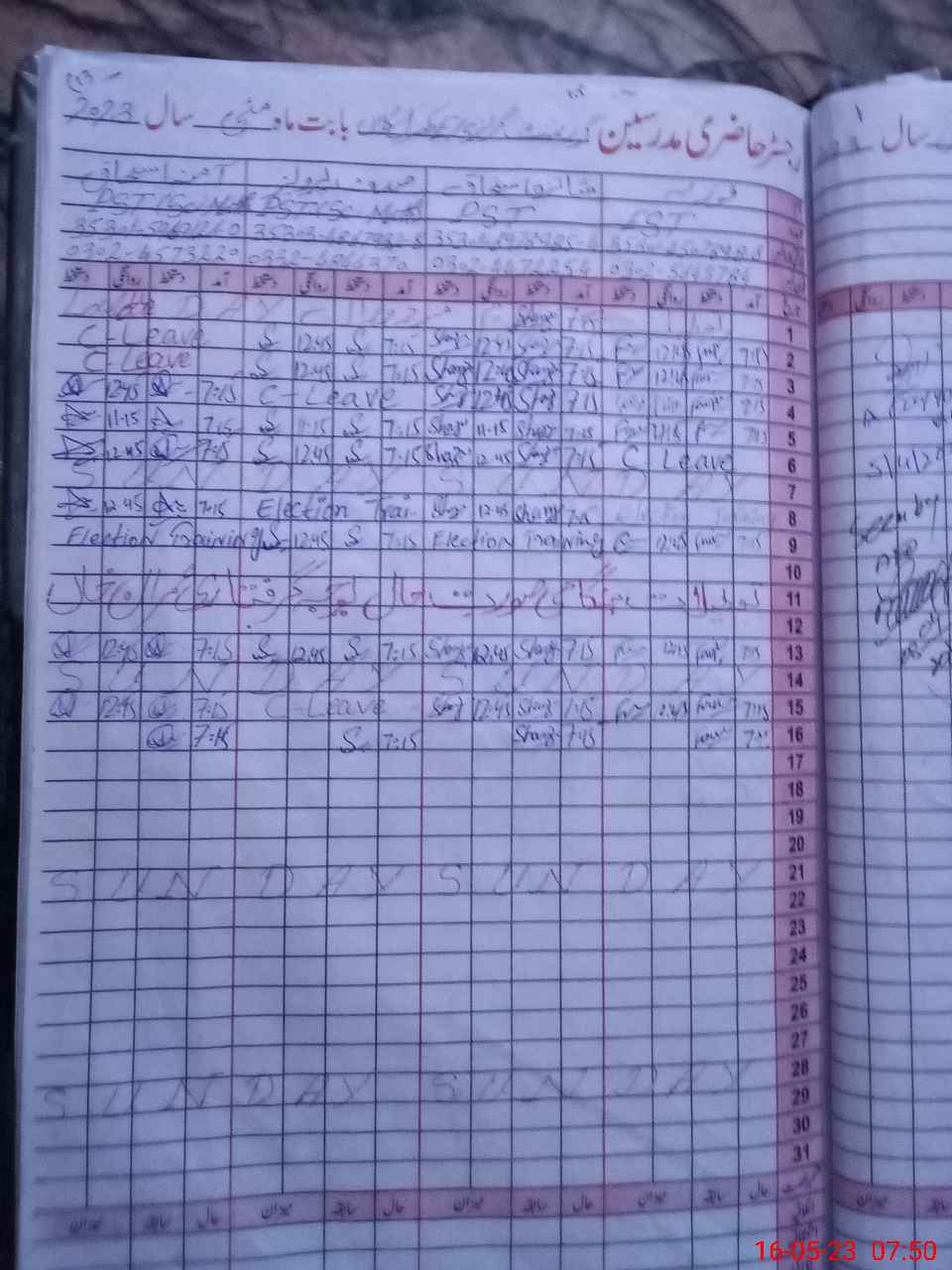 | CNIC | Full Name | Designation | R/C | Absence During Last Calender Month |