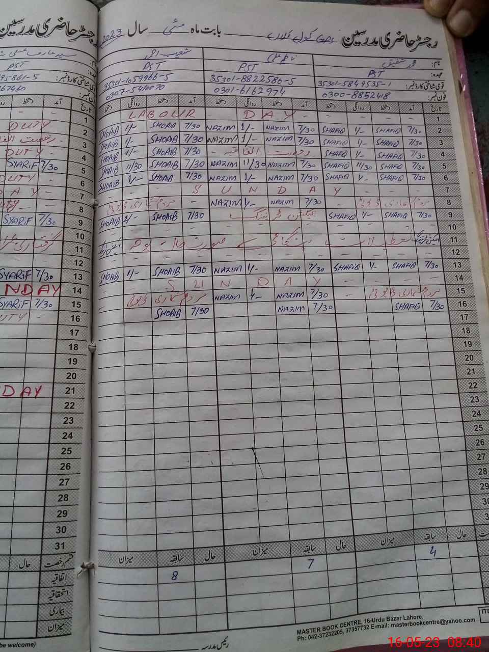 | Remarks (Use Separate Page if Required): PST Syed Arif Ali shah is present in the school but no intry in the teachers colum today is exam duty | |||||