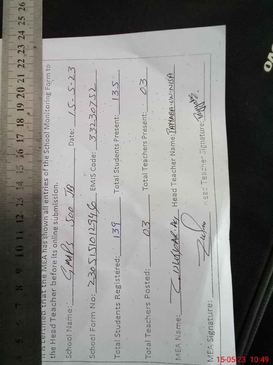 | Certified that this School was Inspected by the Undersigned MEA/DMO Today and the Information Stated Above is as Per Record. | |||||