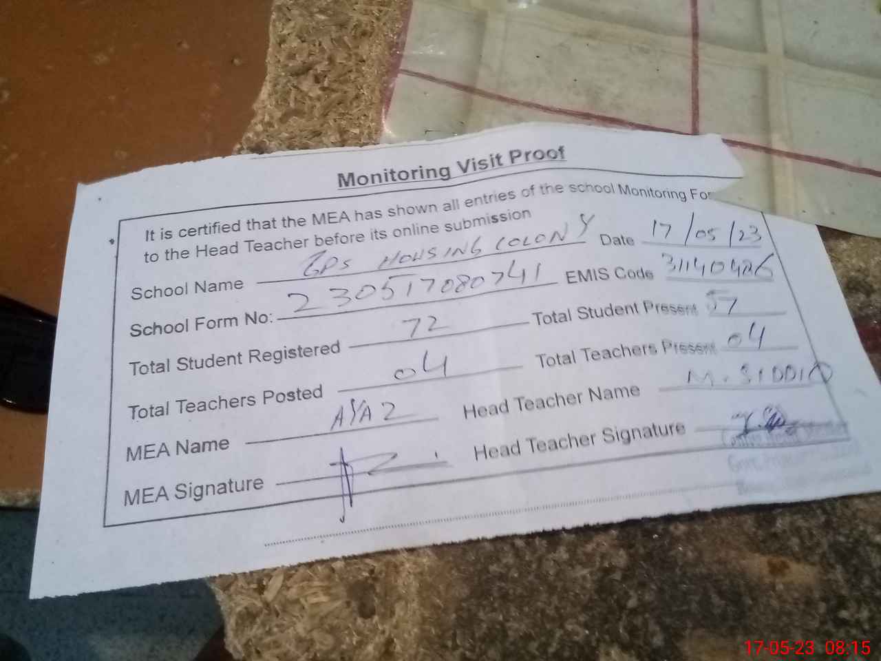 | EMIS Code: 31140486 | Name of School: GPS HOUSING COLONY | |||