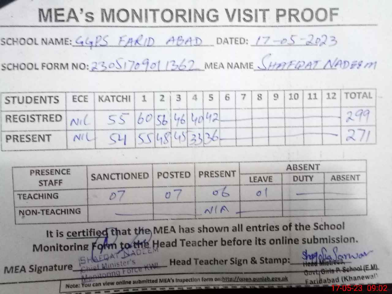 | EMIS Code: 36420354 | Name of School: GGPS FARID ABAD, KHANEWAL | |||