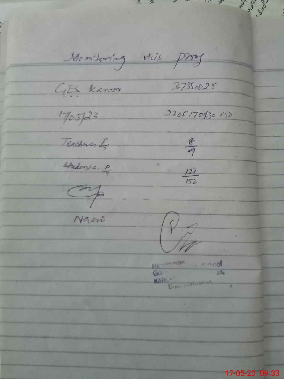 | Attendance Register | Head Teacher | MEA with School | Visit Proof |