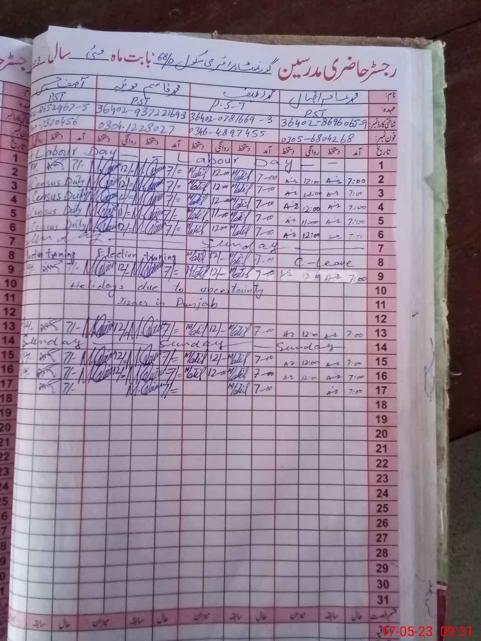 | Name: Mu**** Aa**** Iq**** Designation: (School Headmaster's/Headmistress's) (PST SCI MATH) Phone/Cell Number: 03**** |