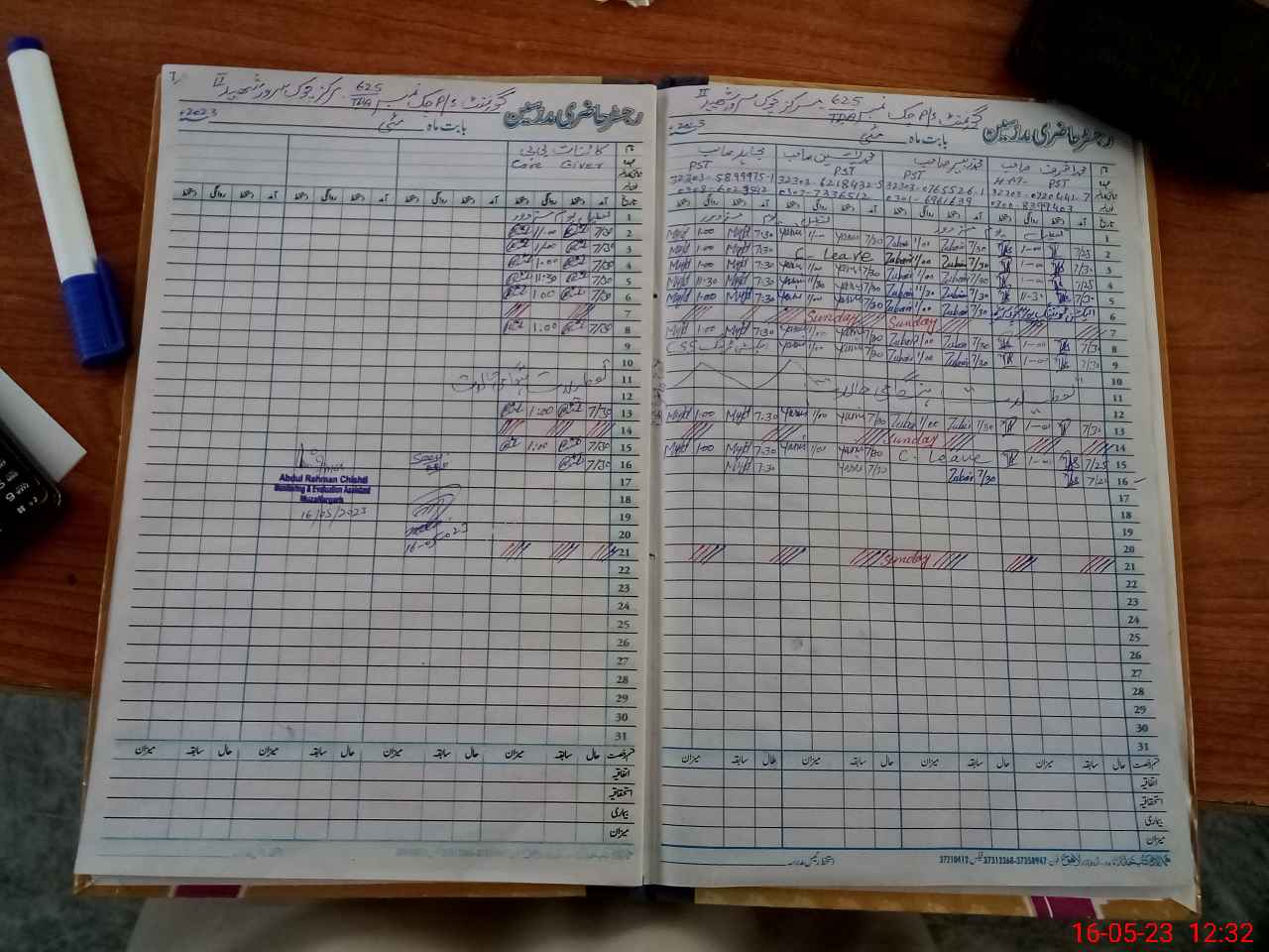 | CNIC | Full Name | Designation | R/C | Absence During Last Calender Month |