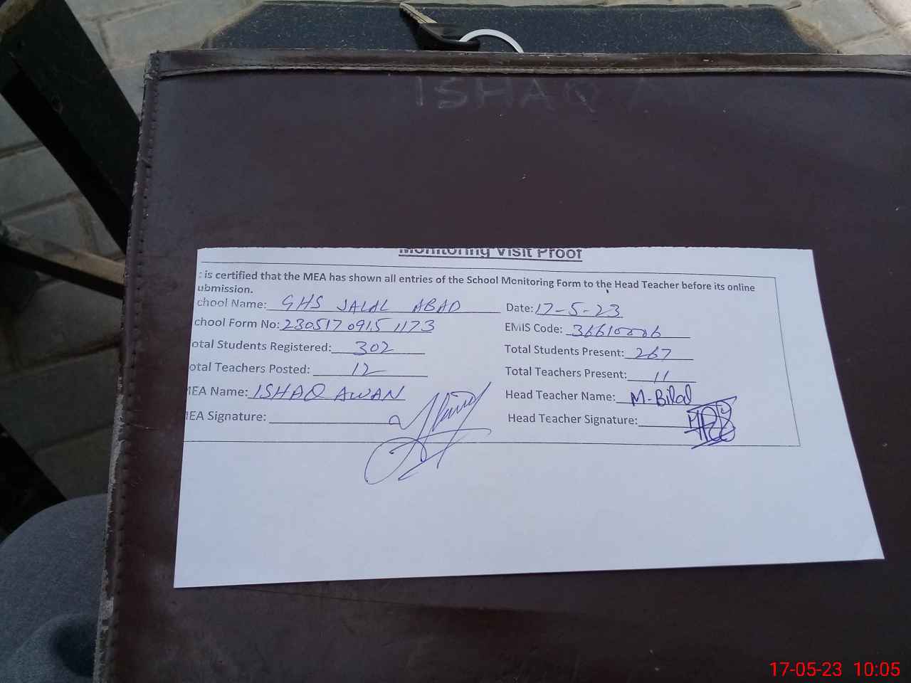 | EMIS Code: 36610006 | Name of School: GHS JALAL ABAD | |||