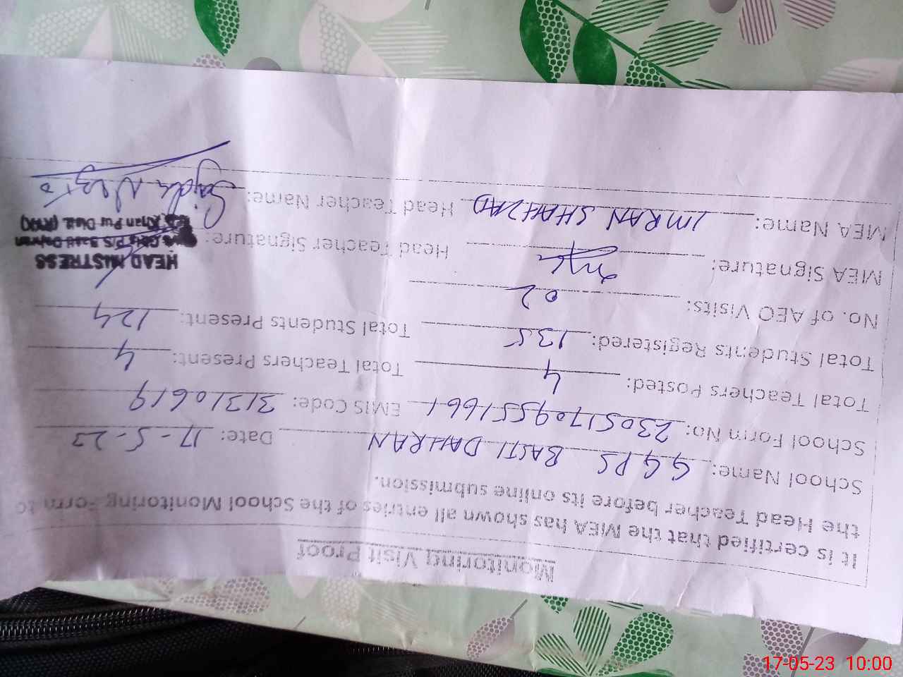 | Certified that this School was Inspected by the Undersigned MEA/DMO Today and the Information Stated Above is as Per Record. | |||||