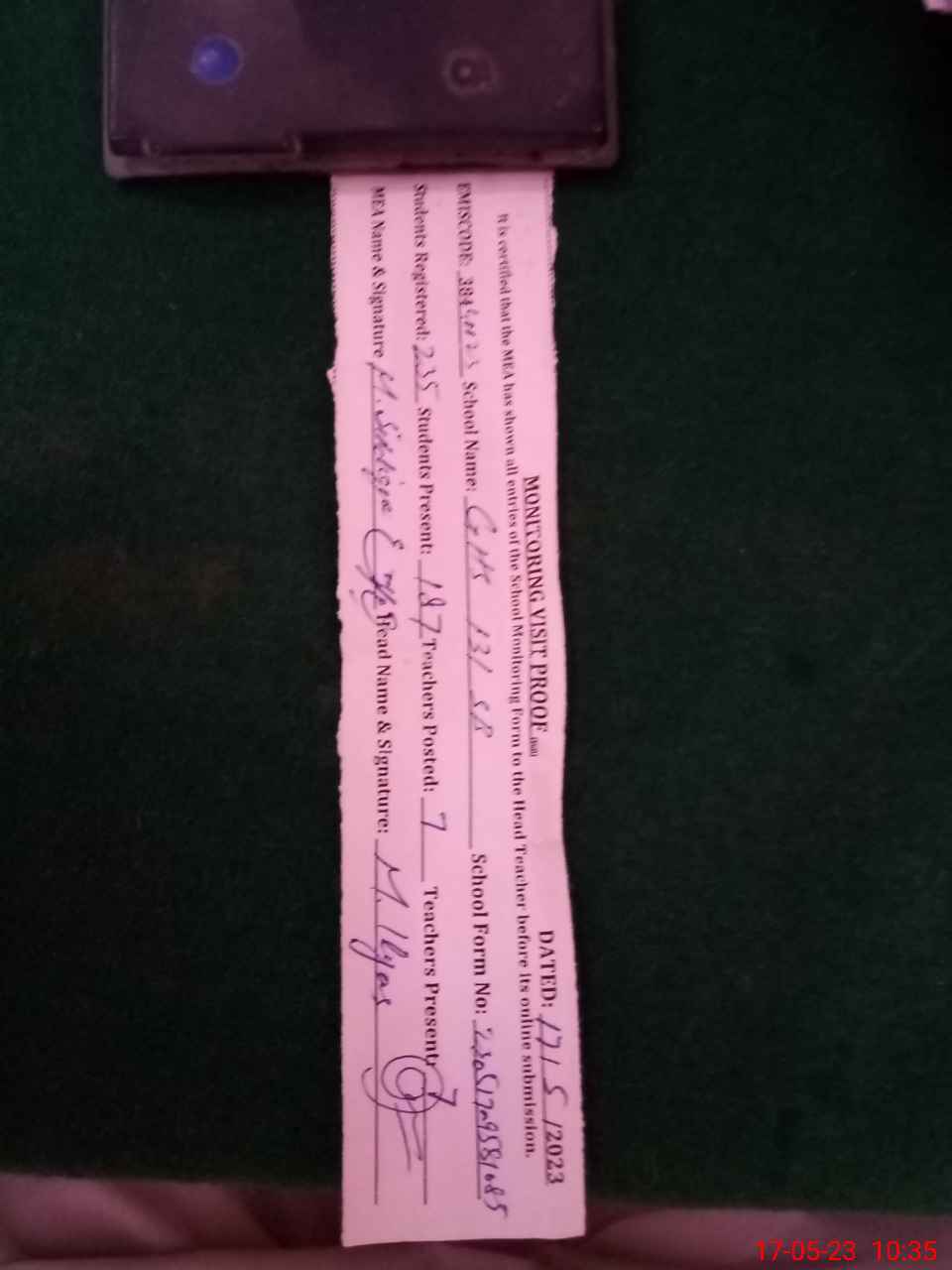 | EMIS Code: 38440023 | Name of School: GHS CHAK NO.131 SB | |||