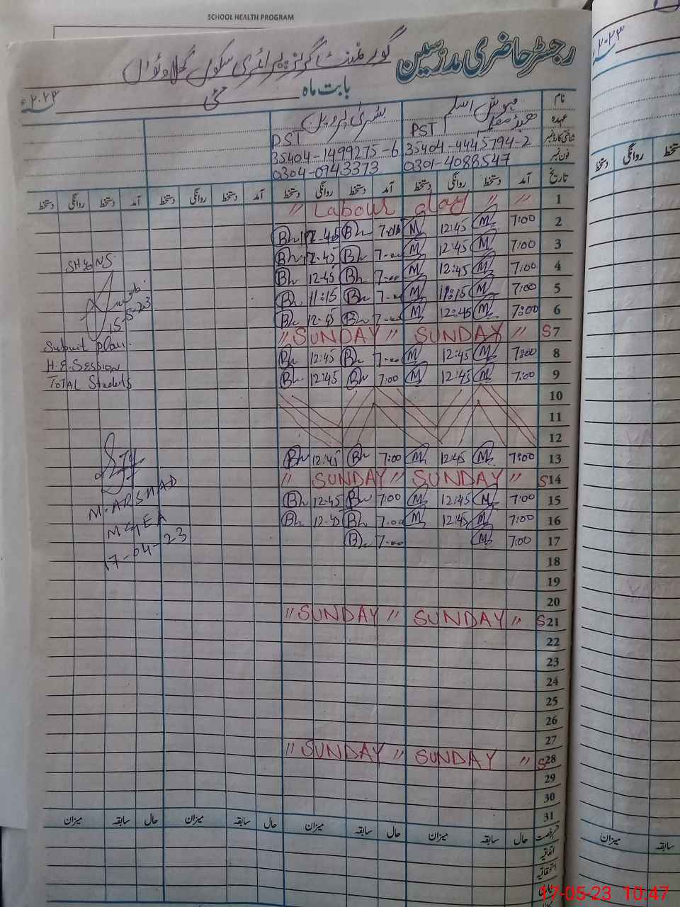 | Name: Ma**** As**** Designation: (School Headmaster's/Headmistress's) PST Phone/Cell Number: 03**** |