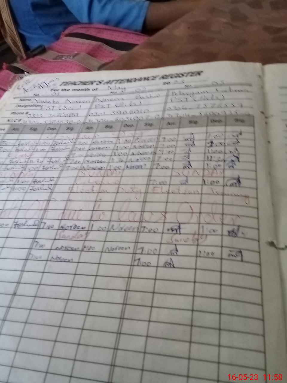 | Name: No**** No**** Designation: (School Headmaster's/Headmistress's) EST Phone/Cell Number: 03**** |