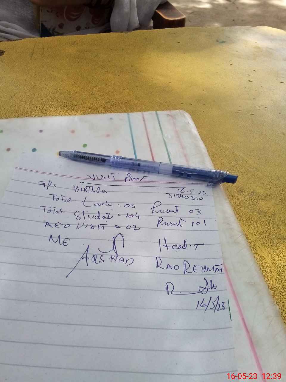 | Attendance Register | Head Teacher | MEA with School | Visit Proof |
