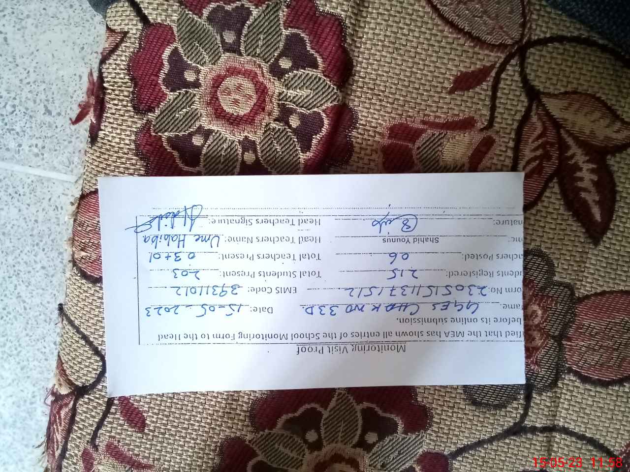 | Attendance Register | Head Teacher | MEA with School | Visit Proof |