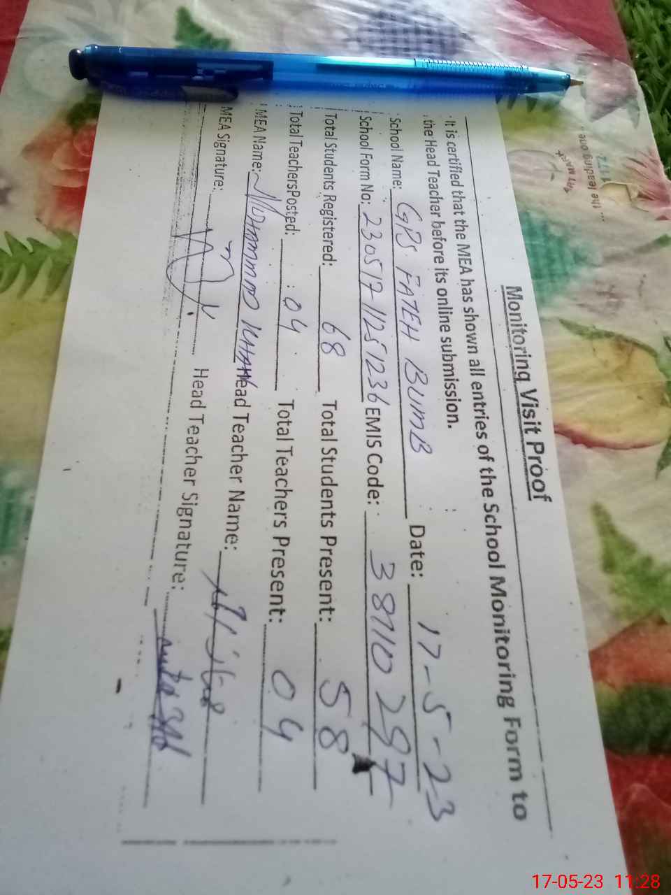 | EMIS Code: 38110297 | Name of School: GPS FATEH BUMB | |||
