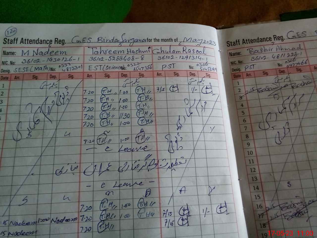 | CNIC | Full Name | Designation | R/C | Absence During Last Calender Month |