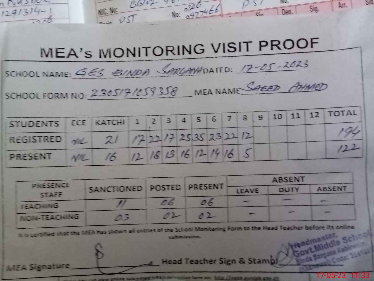 | EMIS Code: 36410319 | Name of School: GES BINDA SARGANA P/O MUMDAL | |||