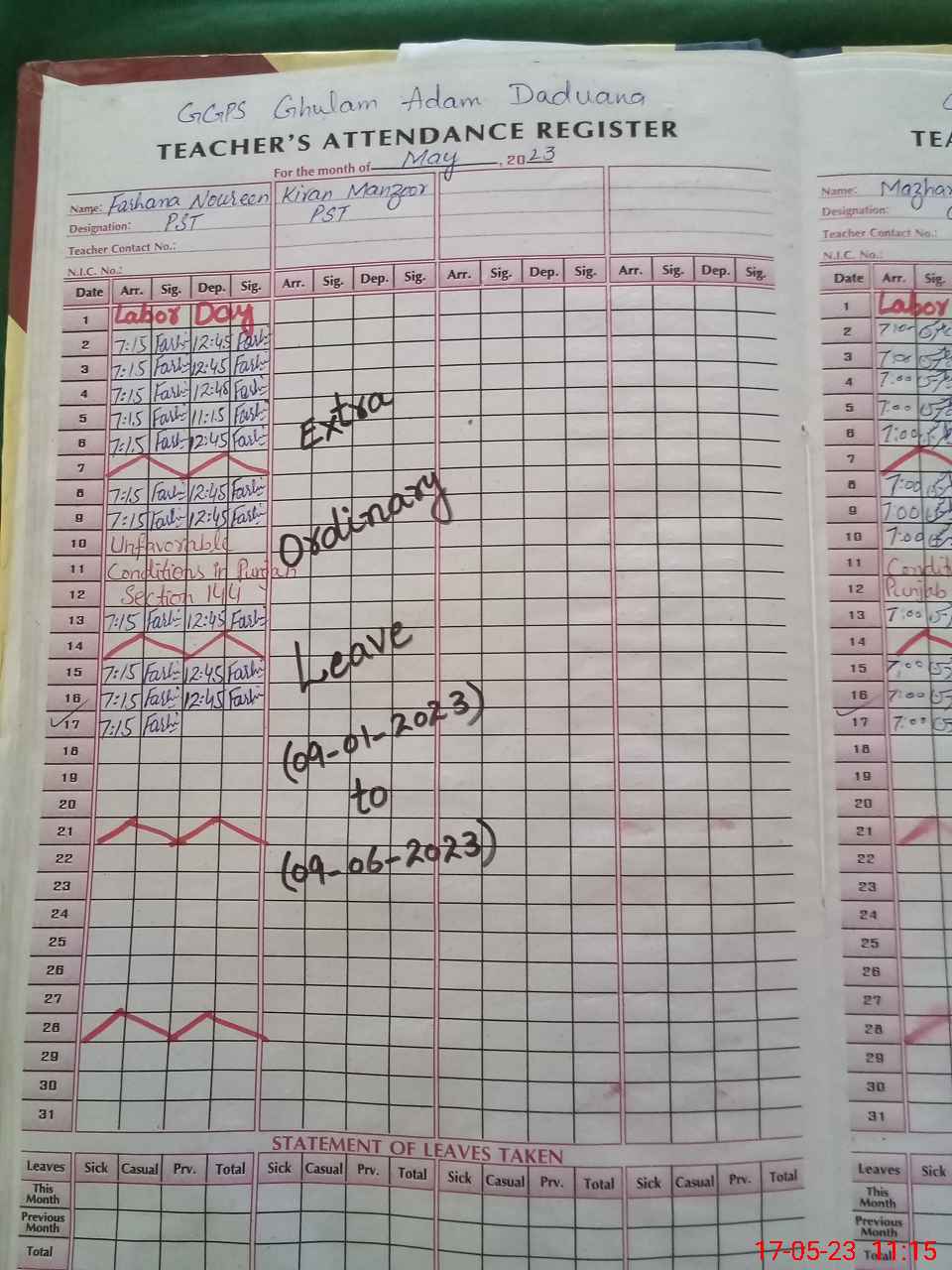 | Leave | Duty | Absent | Maternity | Medical | Ex- Pak |