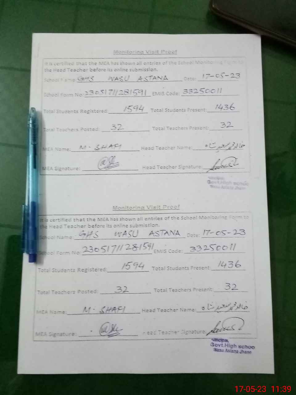| EMIS Code: 33250011 | Name of School: GHS WASU ASTANA | |||