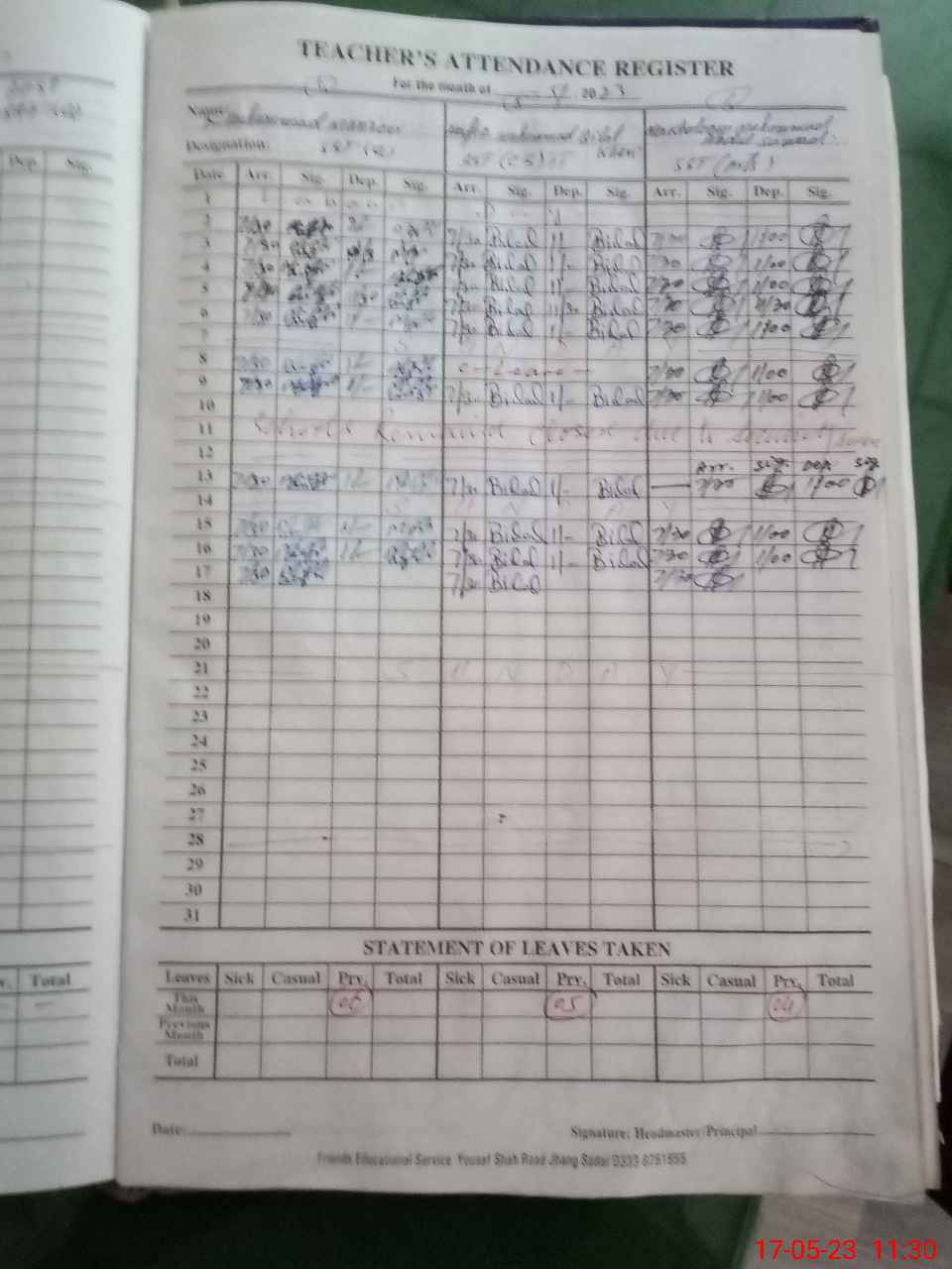 | 33**** | Sy**** Wa**** Ta**** Sh**** | Regular | 0 | 1 | 0 | 0 | 0 | 0 | 0 | 0 | 0 | Exam Duty | |