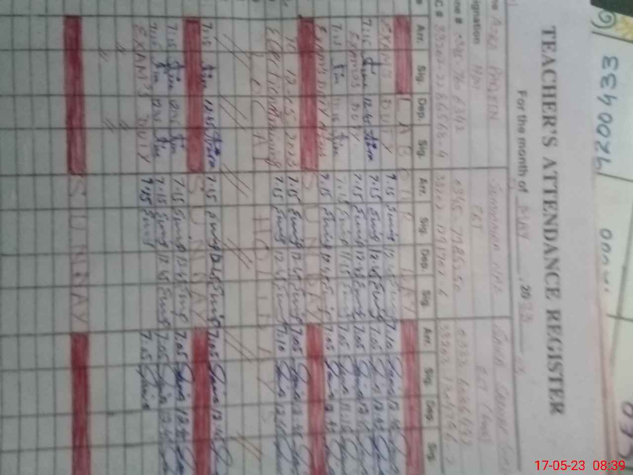 | 33**** | Az**** Ya**** | EST | Regular | 0 | 0 | 0 | 0 | 0 | 0 | 0 | 0 | 0 | Exam Duty |