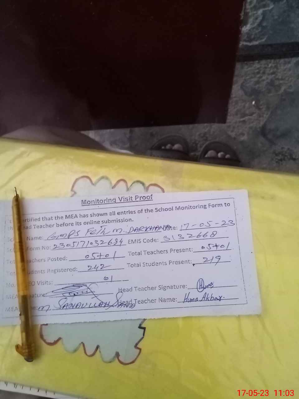 | EMIS Code: 31320668 | Name of School: GMPS FATEH MUHAMMAD DARKHAN | |||