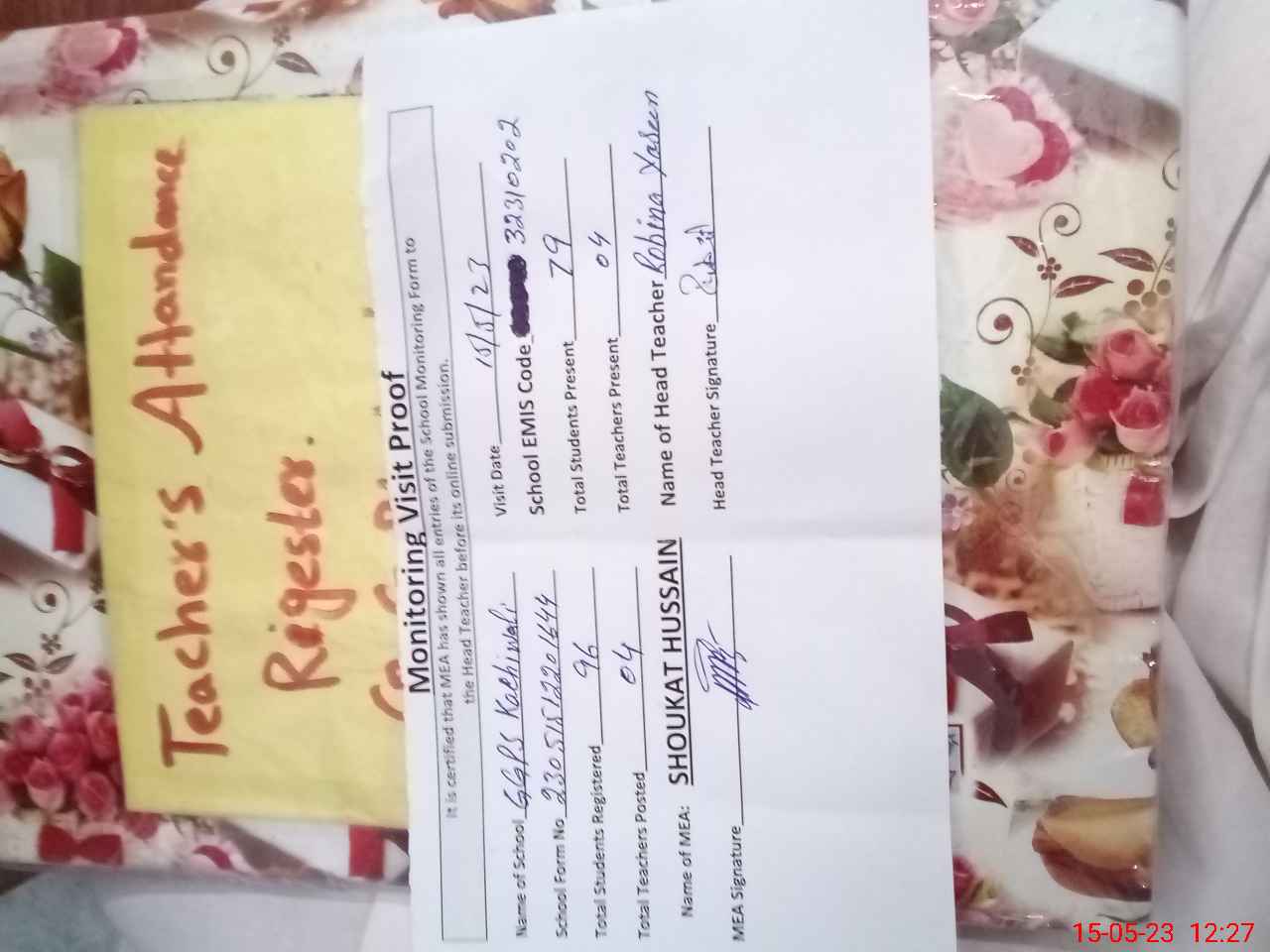 | EMIS Code: 32310202 | Name of School: GGPS KACHI WALI | |||