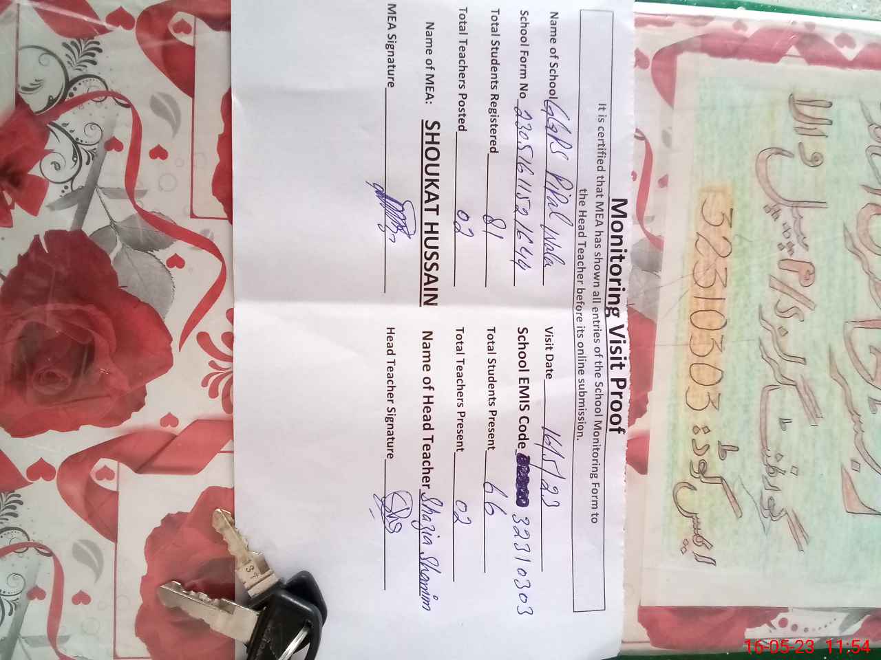| Attendance Register | Head Teacher | MEA with School | Visit Proof |