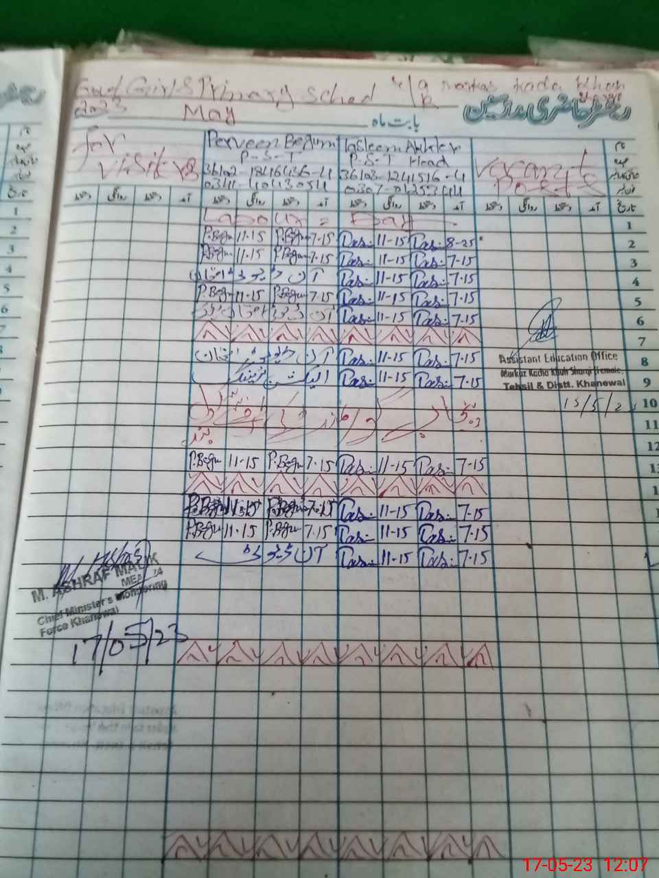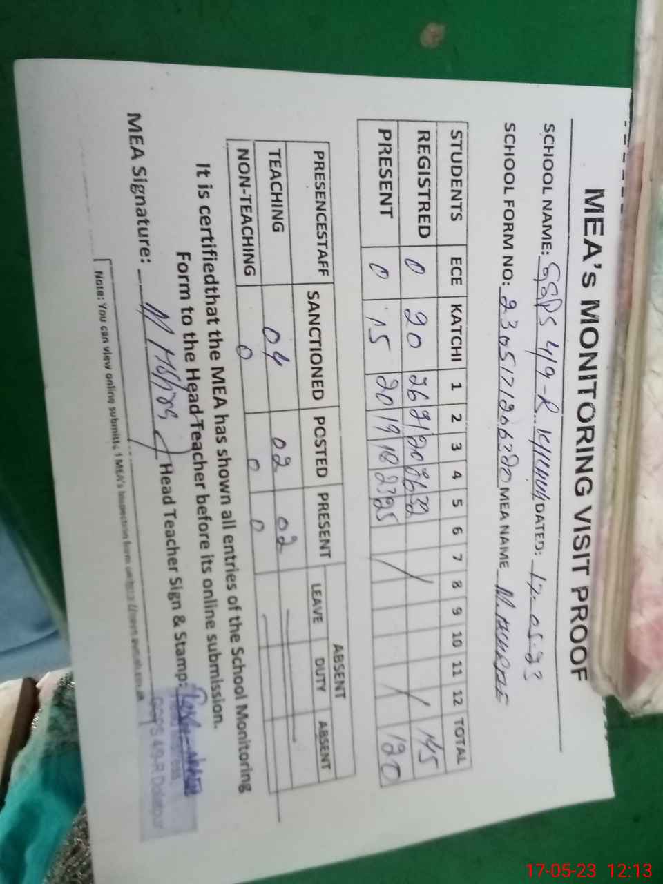 | Attendance Register | Head Teacher | MEA with School | Visit Proof |