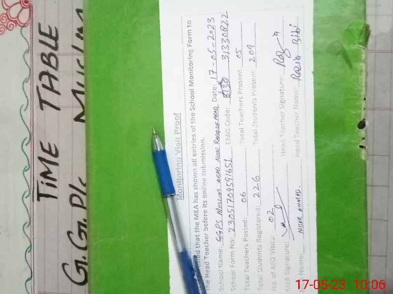 | EMIS Code: 31330822 | Name of School: GGPS MUSLIM ABAD NEW RAFEEQ ABAD | |||